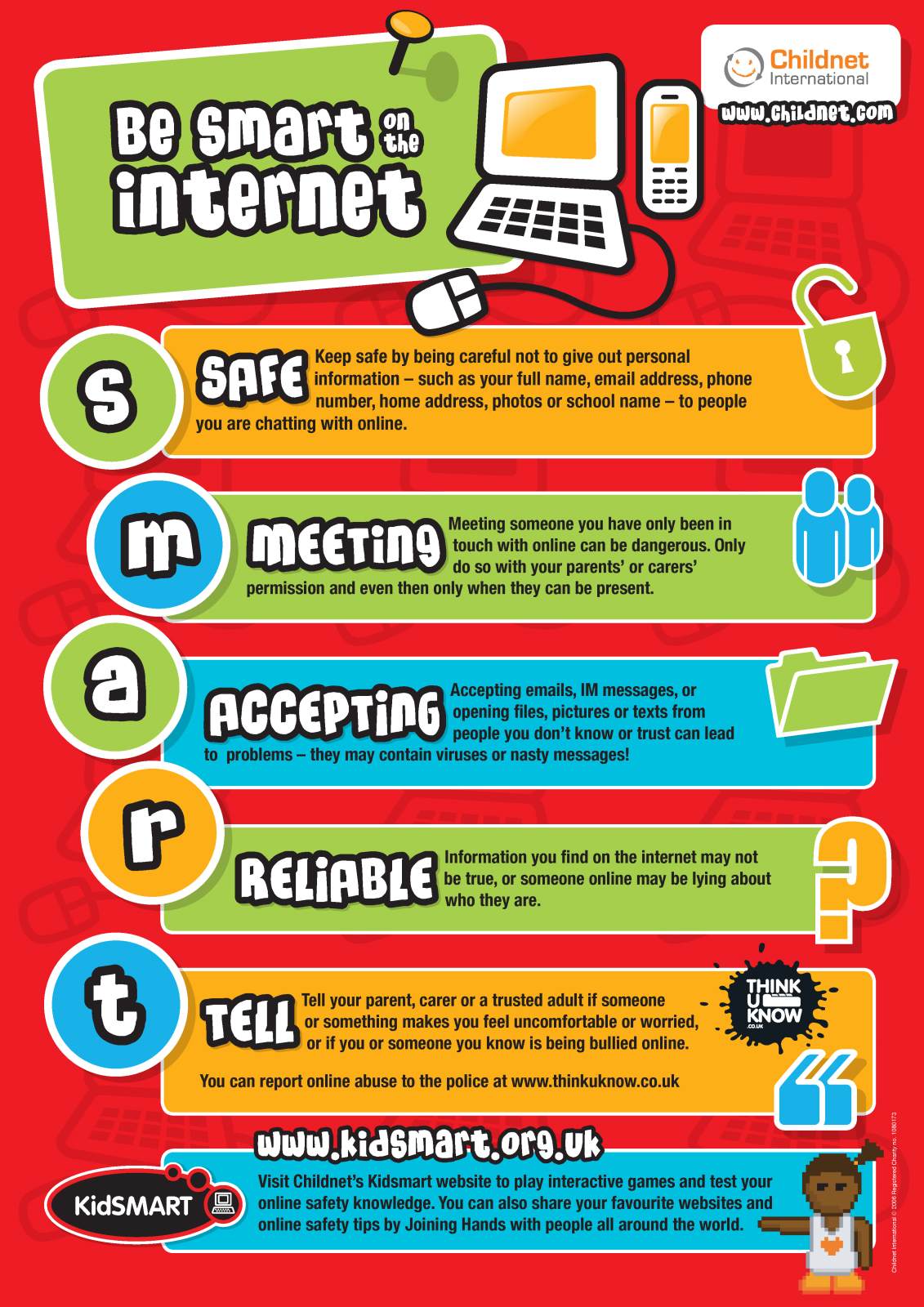 The following image explains the steps to take in order to use the internet safely. Be SMART!
